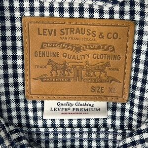 Levi’s XL Premium Cotton Canvas Gingham Check Button Bomber Trucker Biker Coat