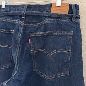 Levi's XL Wide Leg Straight Jeans 32 High Dark Denim Blue Waist Tie Classic