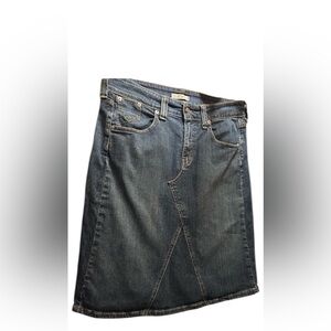 Levi’s skirt, denim mini skirt, women’s size 12, classic jean skirt, 98% cotton, Y2K aesthetic, casual streetwear, timeless denim, A-line silhouette, medium wash, five-pocket design, vintage-inspired denim, soft stretch denim, everyday casual look, spring outfit, festival ready, Levi’s heritage style