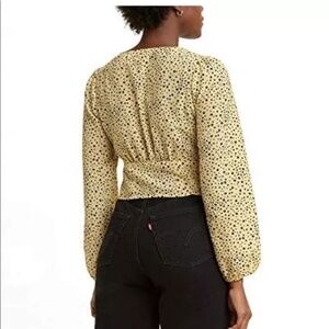 Levi’s Yellow & Black V Neck Low Dip Floral Button Down Blouse Top