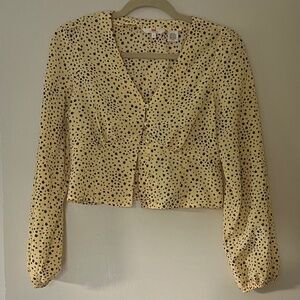 Levis Sophia Womens Top Ditsy Floral Button Front Puff Sleeve V Neck Yellow S