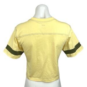 Levi's Yellow Crew Neck Short Sleeve Crop Boxy Graphic Football T-shirt Size XS
