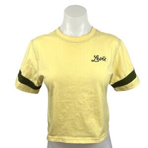 Levi's Yellow Crew Neck Short Sleeve Modern Crop Boxy Pullover Standard Fit Graphic Football T-shirt Size XS
