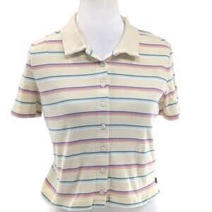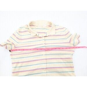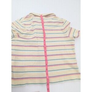 Levi's Yellow Cropped Collared Striped Short Sleeve Polo Shirt Top Size Medium