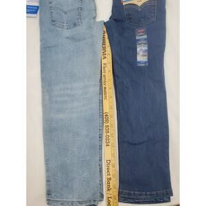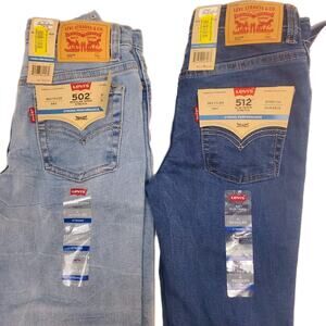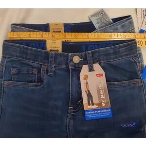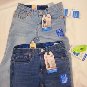 The Levis Youth Boys Size 6 Flex Stretch Adjustable Waist Denim Jeans are a stylish and comfortable option for young boys. One pair is 502 fit and the other is 512. Both new with tags. Made from a blend of polyester and cotton, these jeans feature an elastic waist. The adjustable waistband and stretch fabric ensure a comfortable and flexible fit for everyday wear. With a classic blue color and denim fabric, these jeans are perfect for casual occasions and can be easily cared for with machine washing. The practical features like belt loops and 5 pocket design make them both fashionable and functional for boys on the go.