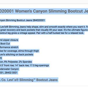 Levi's Zip Fly Mid Rise Canyon Slimming Bootcut Jeans 28w/Measurement