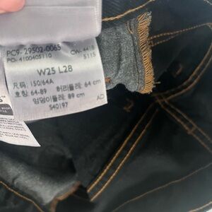 Indigo base with a black overdye on top for a blue black look. No stretch 501. Missing leather patch on back .