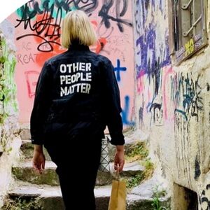The jacket that gets strangers to connect and that sparked the OPM movement. Wear this jacket and you will likely find many "others"- strangers and not strangers- asking you: "What does other people matter mean to you?" And if you feel so moved, pass your jacket off to an "other" in that moment of connection.