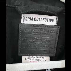 Levi’s black denim jacket with the opm collective.