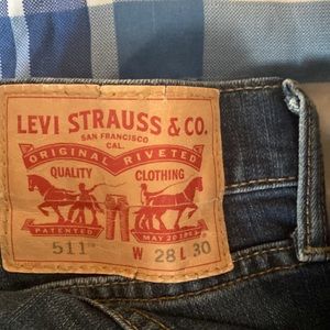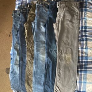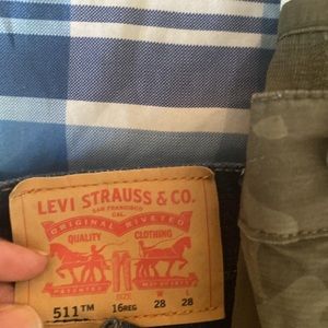 6 pair of boys Levi’s normal wear and tear. Camouflage ones have a couple of small paint stains from school and a small hole in blue ones.