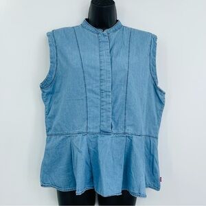 Levi's chambray peplum sleeveless top western blue women's size L