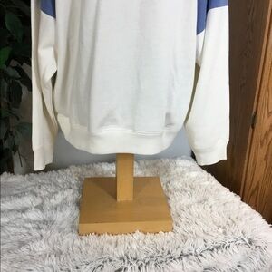 Levi’s colorblock everyday crewneck sweatshirt XL ivory w/blue w/green stripe approximate pit to pit 24 shoulder to hem 25