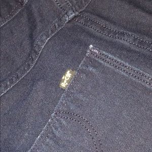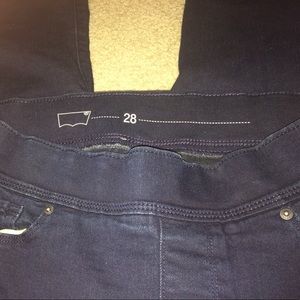 Soft and stretchy denim (very much like jeggings). No zipper, just a stretchy waistband so they're easy to slip on. Worn only once or twice. No holes, tears, or stains (looks brand new).