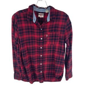 Levi’s flannel shirt top button down plaid red black small