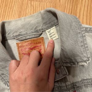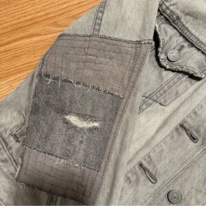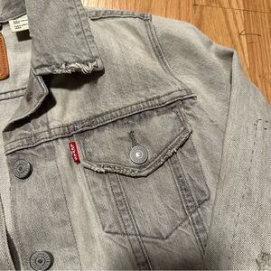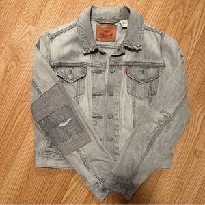Levi’s gray distressed cropped medium women’s button denim jacket