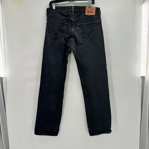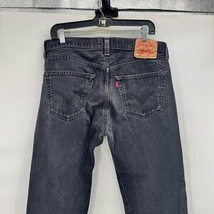 These Levi's jeans in a deep black color feature a classic straight leg cut and standard waistband.