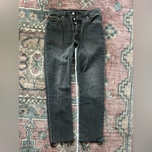 Stylish and versatile women’s faded black jeans, perfect for any occasion. Fastens with 5 buttons - no zipper. Never worn and washed once. Perfect condition. No flaws.