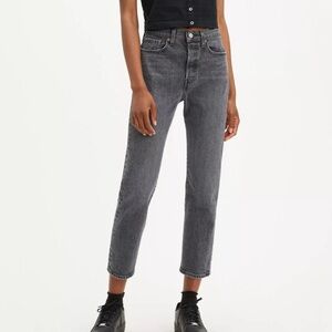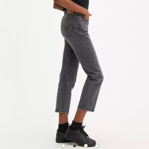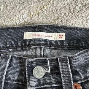 Levi’s premium jeans wedgie straight leg high rise button fly gray black crop ankle