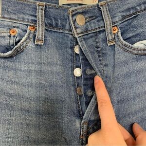 Levi’s medium wash high rise button fly wedgie skinny distressed jeans