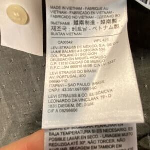 This is a very nice men’s size small Levi’s button down shirt. Charcoal gray with a small flek in it 100% cotton shirt and excellent gently used condition