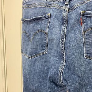 Levi’s mid rise skinny blue jeans. 4 pocket, button and zip closure. Slight stretch, good fit. Good used condition. size 18