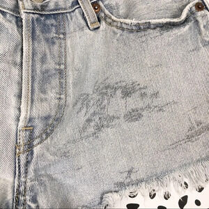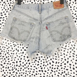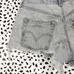 Levi’s light wash jean shorts. Cheeky. Palm tree print. Button fly. Size 26