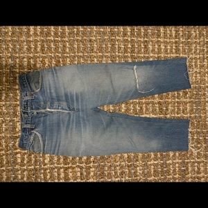 The RE/DONE | Levi's Mid Rise Crop features a classic mid rise, a slim fit throughout, and a 26" cropped inseam. Reconstructed from vintage Levi's, the High Mid Rise Crop is made in Downtown Los Angeles using no water.