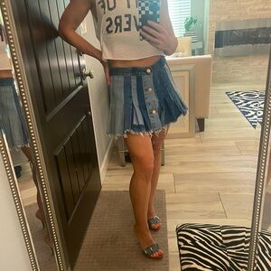-Levi’s redone distressed denim pleated tennis mini skirt