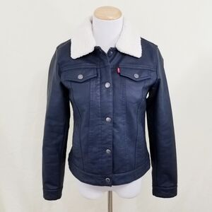 Levi's sherpa leather trucker jacket navy blue size XS (missing cuff snap)