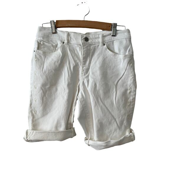 White Denim Summer Bermuda Shorts High Rise High Waisted Embroidered