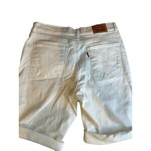 Levi’s white embroidered denim Bermuda shorts, size 29. Good preowned condition. Cotton elastine blend