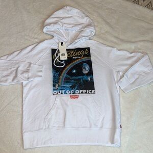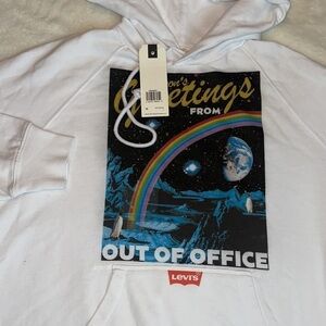 Levi’s seasons greetings from out of the office white sweater hoodie