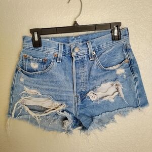 Levi's x Aritzia 501 distressed denim button fly shorts sz 26