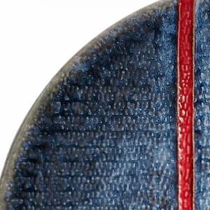 Blue glazed finish with a bold red stripe lends character to your tableware