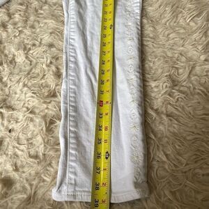 Women’s bottoms pants trousers stretch jeans denim ivory embroidery flowers floral BoHo