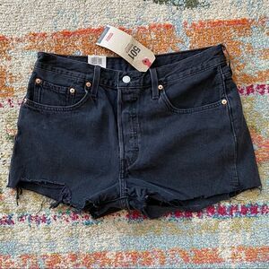 NWT Levi’s 501 High Rise Black Button Fly Cut Off Denim Shorts