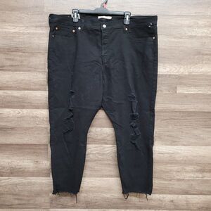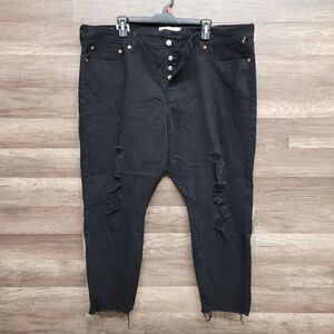 Levi's 501 High Rise Wedgie Skinny Button Fly Jeans Black Distressed Plus 24W
