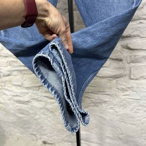 Item is pre owned. Heavy distress and fading and shown. Holes, fraying, marks, discoloration throughout. Please refer to photos for detail.