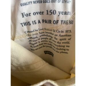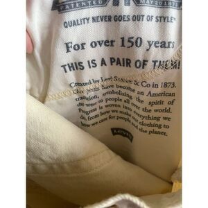 The product is a pair of Levi's 502 Men's Yellow Denim Jeans in size 30x30. These regular tapered fit jeans feature a zipper fly closure, 5-pocket design, and are made of denim fabric. They come in a solid yellow color with studded accents and branding, suitable for the summer, fall, and spring seasons. The jeans are machine washable and easy to care for, offering comfort and style for various occasions. Perfect for those looking for a vibrant and trendy addition to their wardrobe, these Levi's 502 pants are a great choice for fans of festivals, hipster fashion, and retro styles.