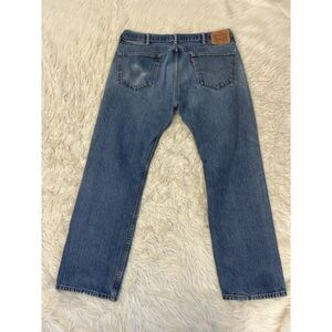 Levis 505 Jeans Mens Light Wash Denim Regular Fit Straight Ripped 38X32