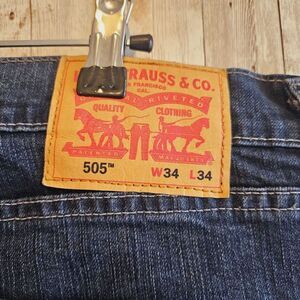 Levi's 505 Regular Fit Straight Blue Stretch Denim Jeans Mens Size 34x 34