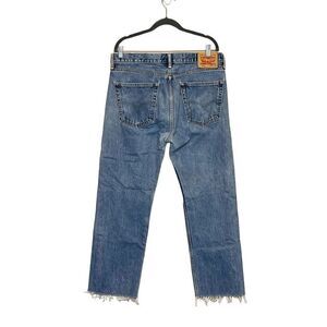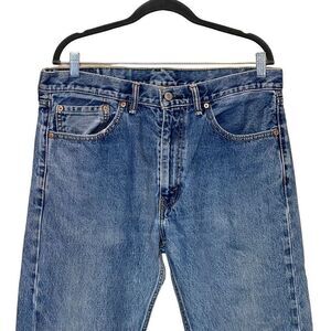 Levi’s 505 medium wash jeans with raw hem size 36. 100% cotton. Great condition. Classic style. Waist 18” Rise 12” Inseam 29”.