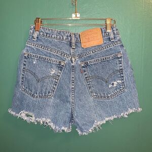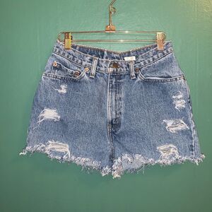 Levi’s 512 vintage high waisted distressed Frayed denim shorts
