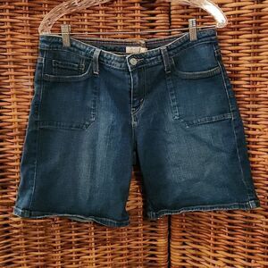 They are size 10. The waist has been taken in a smidgen at the back center waistband. See picks. The measure about 15" from side to side at waist and have an 8" inseam.