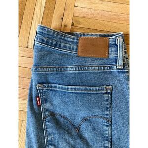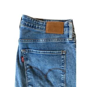 Levi’s 721 High Rise Medium Wash Slightly Distressed Skinny Jeans. Size 31 / 12. 97% cotton 3 % elastin for a smooth fit. Red tag, big E 5 pocket jeans. Excellent preloved condition. Flat lay 15.5” W, 30” L, 30” I, 10” R, 6” A. #normcore #minimalist #gnd