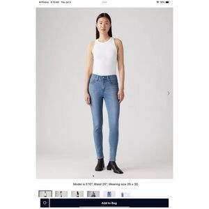 Levis 721 Hi Rise Skinny, Med Wash, Distressed, 31/12. Classic Minimalist