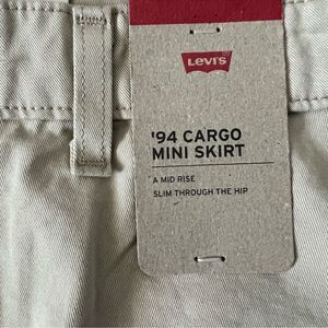 This listing is for a NWT's Levi's '94 Cargo Twill Mini Skirt in khaki, size 28. Your favorite cargos—in skirt form. With an ultra-flattering mid-rise and an above-the-knee length cut, our Mini Cargo Skirt features oversized patch pockets and effortless '90s style.