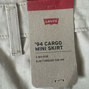 This listing is for a NWT's Levi's '94 Cargo Twill Mini Skirt in khaki, size 32. Your favorite cargos—in skirt form. With an ultra-flattering mid-rise and an above-the-knee length cut, our Mini Cargo Skirt features oversized patch pockets and effortless '90s style.