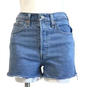 Levi’s Cutoff Shorts Blue 501 Button Fly Raw Hem Shorts Size W 28