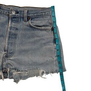 Levi’s distressed cut-off butt fly jean shorts. See pics for flat lay measurements
